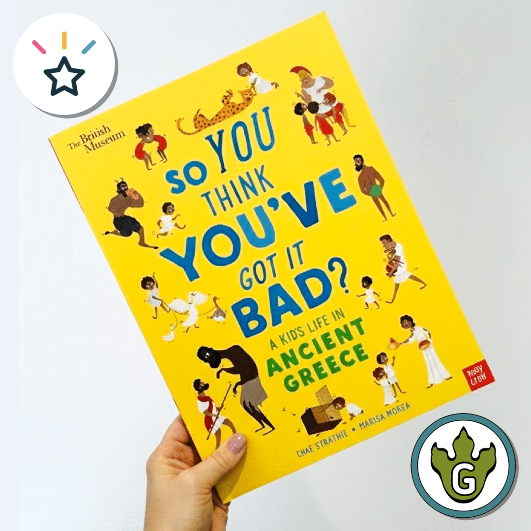 Summary: Complaining about school? At least you don’t have to go through tough Spartan training! This funny and factual book dives into the daily life of children in Ancient Greece, from their strange food to their even stranger beliefs.
